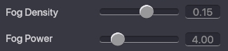 Fog Density - 地平線上の霧の濃さを設定できます。 Fog Power - 地平線上の霧の強さを設定できます。