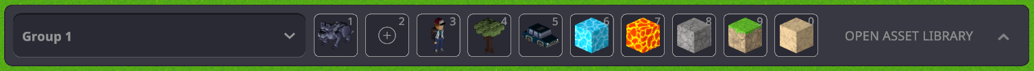 Game Maker 0.9 からクイックアクセスバーのGroups のドロップダウンを使って10個のショートカットを使って10個のグループを作成できるようになりました。