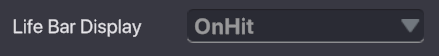 Life Bar Display - オブジェクトのライフバーが表示されるタイミングを設定できます。 Always - ライフバーは常に表示されます。. On Hit - ダメージを受けたときにライフバーが表示されます。 Hidden - ライフバーは表示されません。
