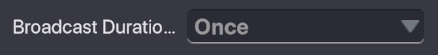 Broadcast Duration Type -期間のタイプを選択できます。Defines the type of duration. Once - 一回 Duration - ブロードキャスト間の時間と遅れを秒単位で設定できます。 Forever - ブロードキャスト間の遅れを使って永遠にブロードキャストします。