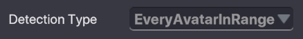 Detection Type - アクターの検知方法を設定できます。 Everyone In Range - レンジ内のすべてを検知します。 Everyone Avatar In Range - レンジ内のアバターを検知します。 Player Avatar In Range - レンジ内のプレイヤーアバターを検知します。 Specific Tag In Range - レンジ内の特定のタグを検知します。 Selected Actor In Range - レンジ内の指定されたアクターを検知します。