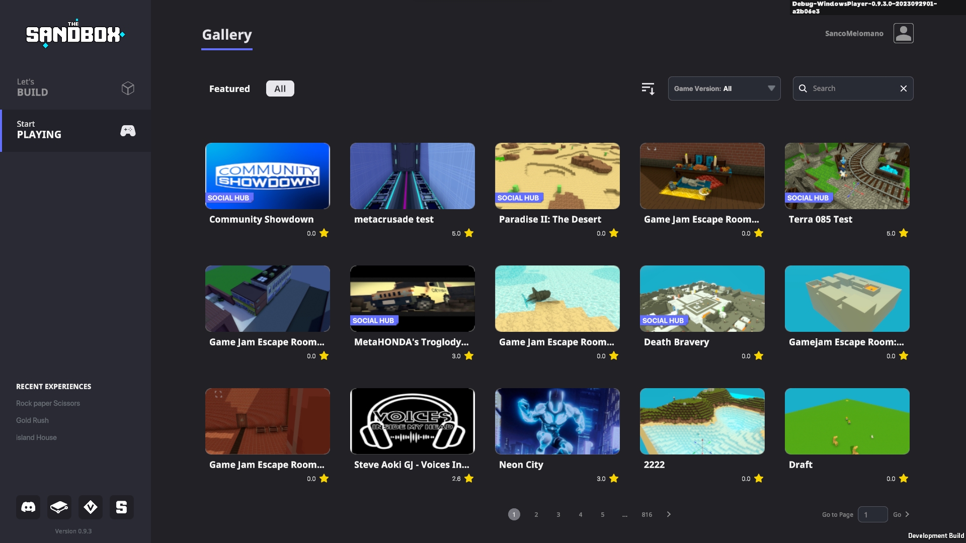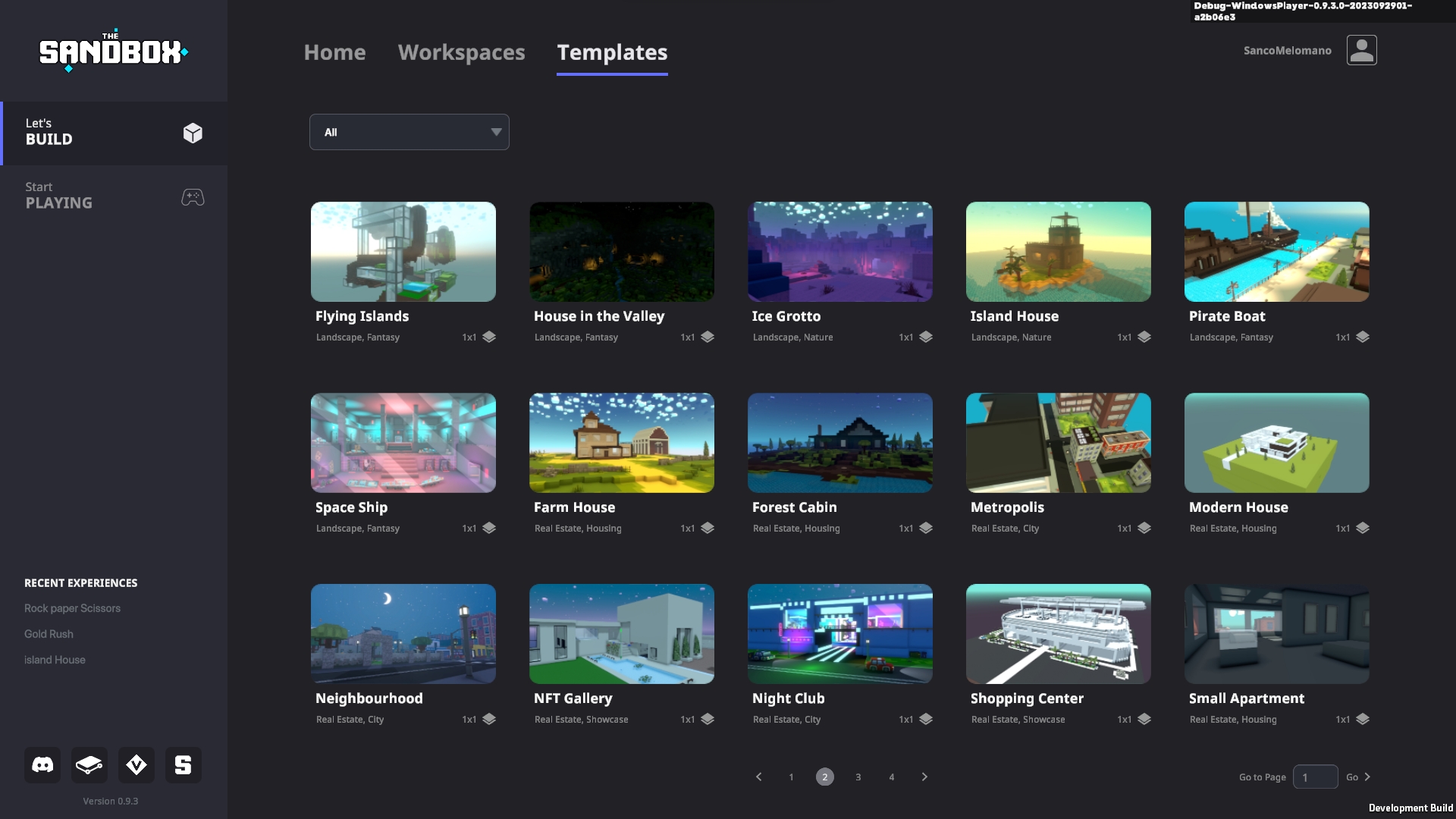 Game Maker ホーム画面から体験の開いたり、新しい体験を制作することができます。また様々な用途に合わせて使用できるテンプレートをダウンロードしたり、Draft Gallery(ドラフトギャラリー)へシェアされた体験を開いて遊ぶことができます。
