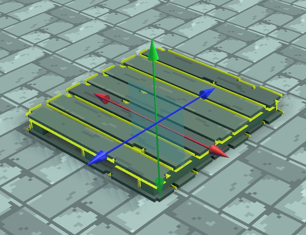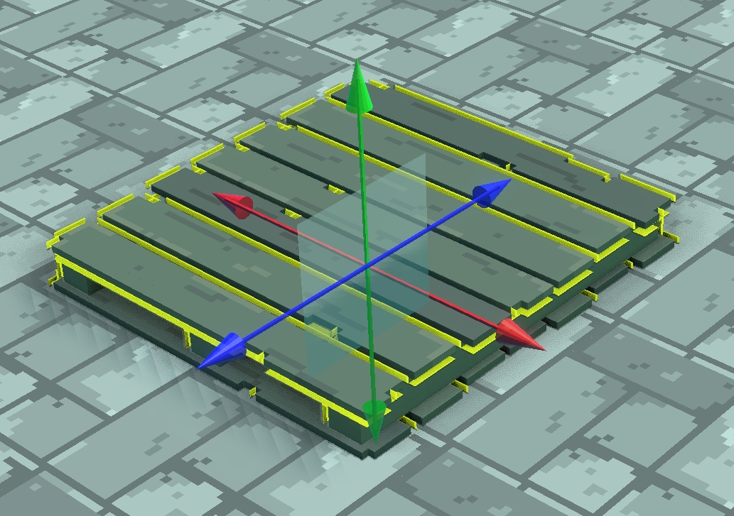 マウスのカーソルをすべての軸の中心に合わせると立方体が表示されます。3 つの軸の上でドラッグしながら同時に移動させます。