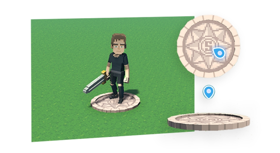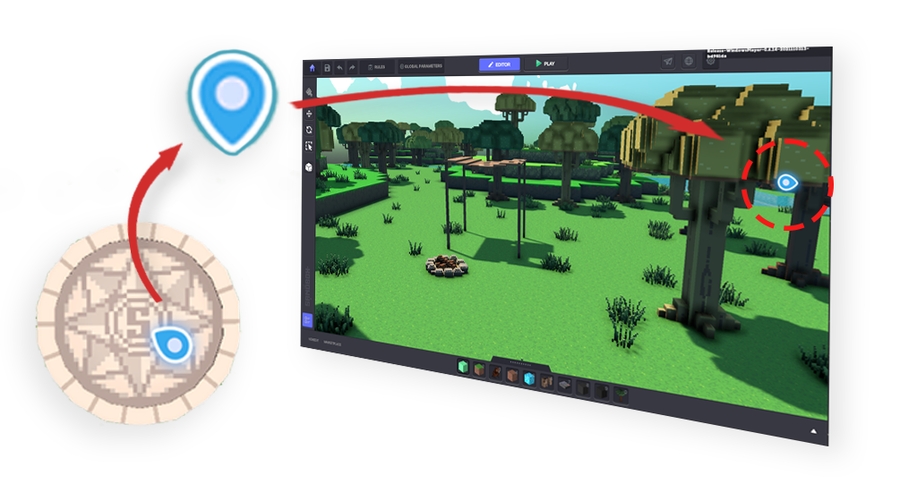 編集モードではアバタースポナーの上に水色のサインが表示されます。ビューポイントの外にある場合は画面の端に表示されます。