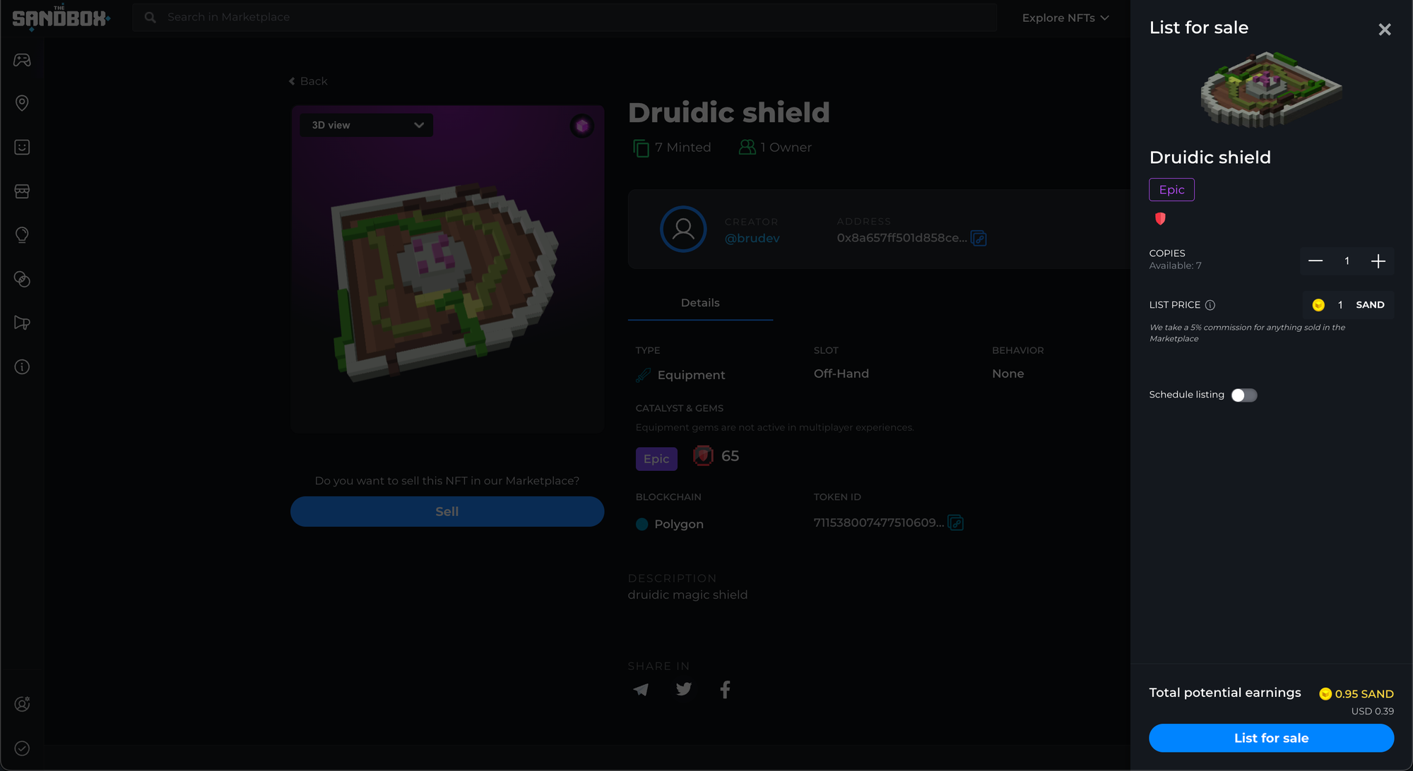 The Sandbox マーケットプレイスでPolygon が実装されました。