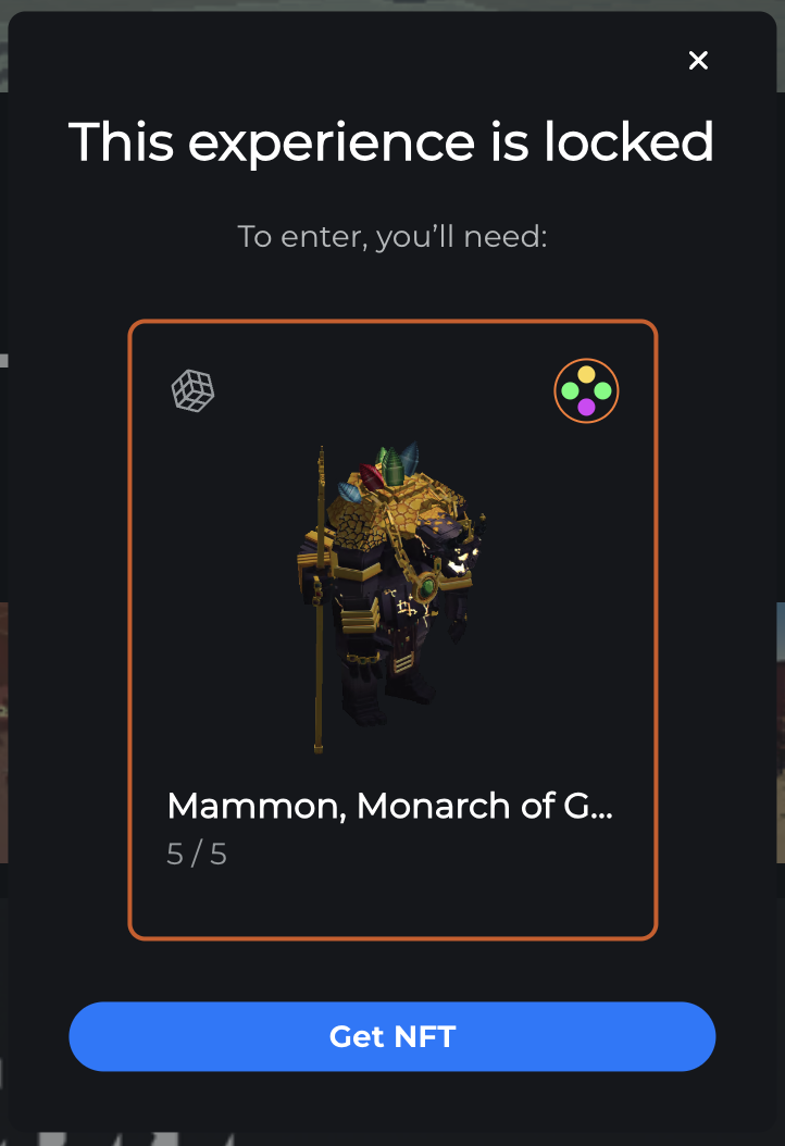 コレクションからのアバターを必要条件とする場合、アバターを単に所有していたり、プレイヤーのウォレットに所有しているのではなく、体験に入る際にそのアバターを装備している必要があります