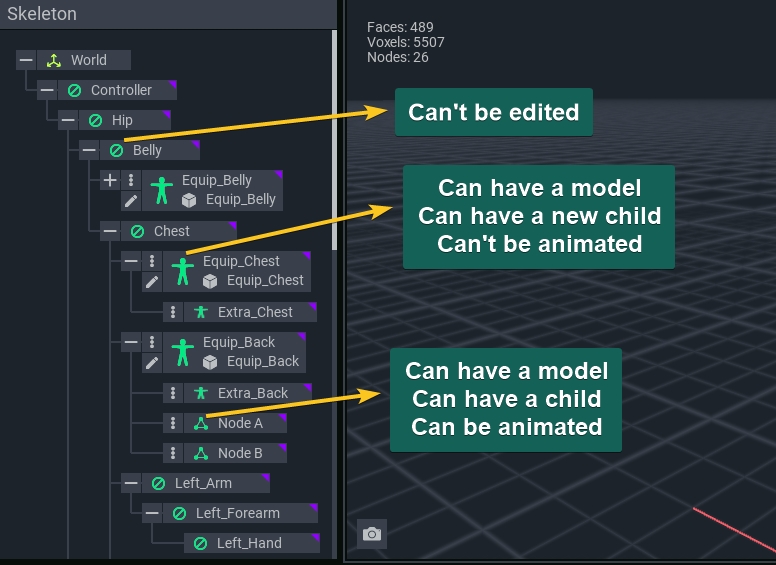 🚶Equipment base and extra nodes: They can have a model attached, and they can have user-created children nodes but they can’t be moved or rotated. They are the main attachment point of any equipment piece.