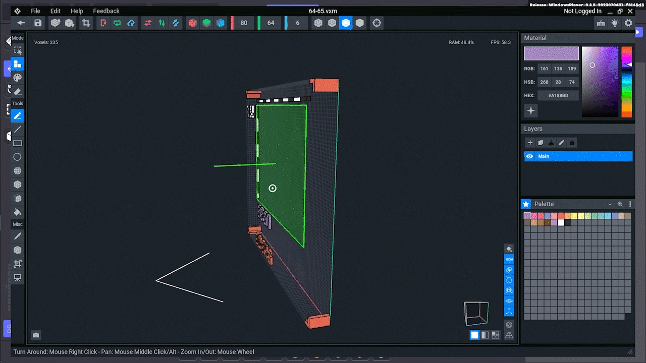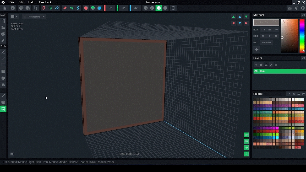 The Frame Tool in VoxEdit's Modeler Tools Menu is used to select the rectangular display area. Uploading the asset to your Workspace maintains this property and makes the asset available in your Game Maker library.