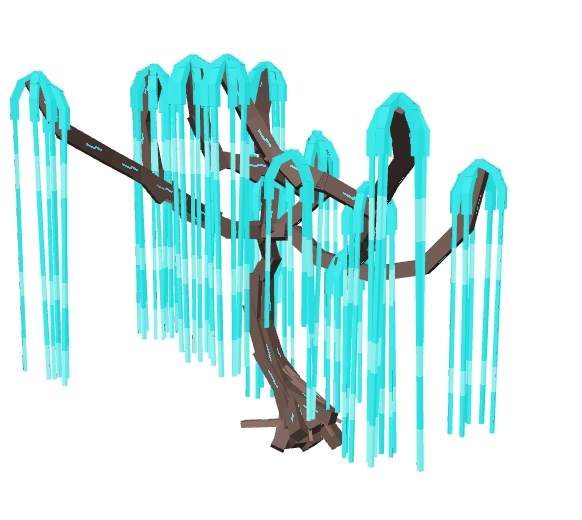 Organic shapes can be a bit challenging to build in VoxEdit's animator simply because they don't have symmetry. However, you can create models and reuse them in your design to simplify the process.