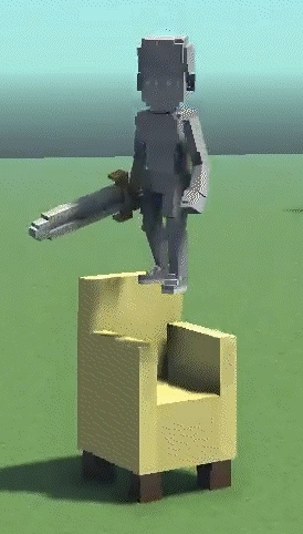Breaking down objects separates an asset made in the モデラー into multiple models, which can then be assembled in the アニメーター.