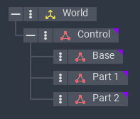 The Control Node is a Parent of the Base, Part 1, and Part 2 nodes. The