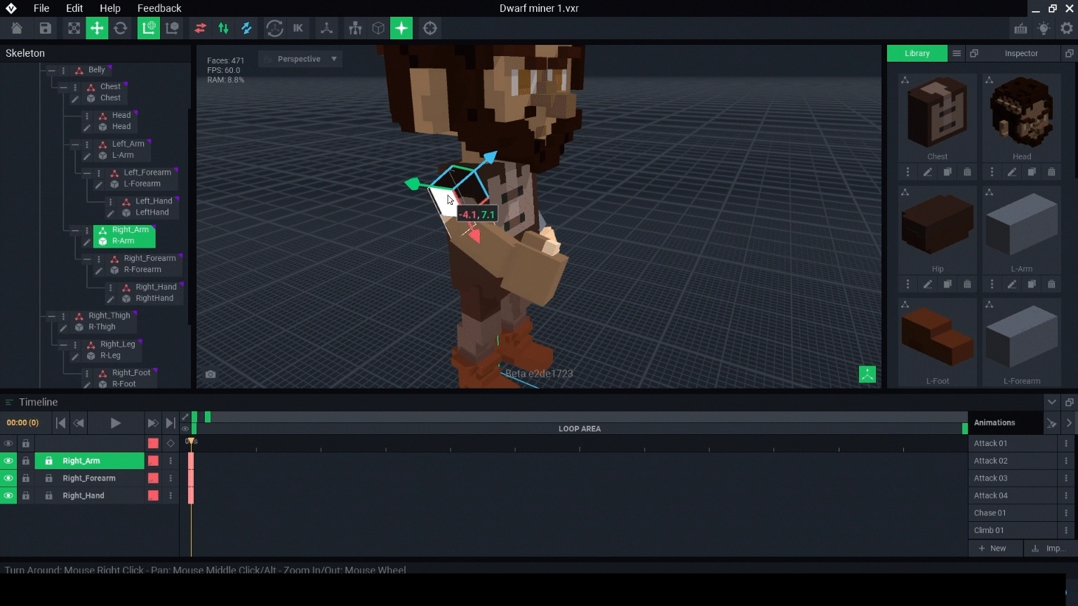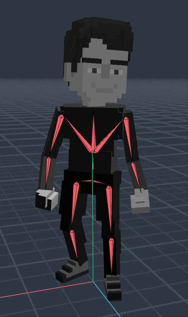 In VoxEdit, an asset's walking animation should appear to be walking while staying in one location. When this asset is used in the game engine, the behaviour system will move the asset based on the player's use of controls, which will look natural with the animation.