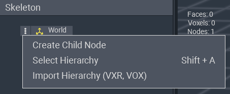 button to the left on the 'World' Node to open a menu with options to: