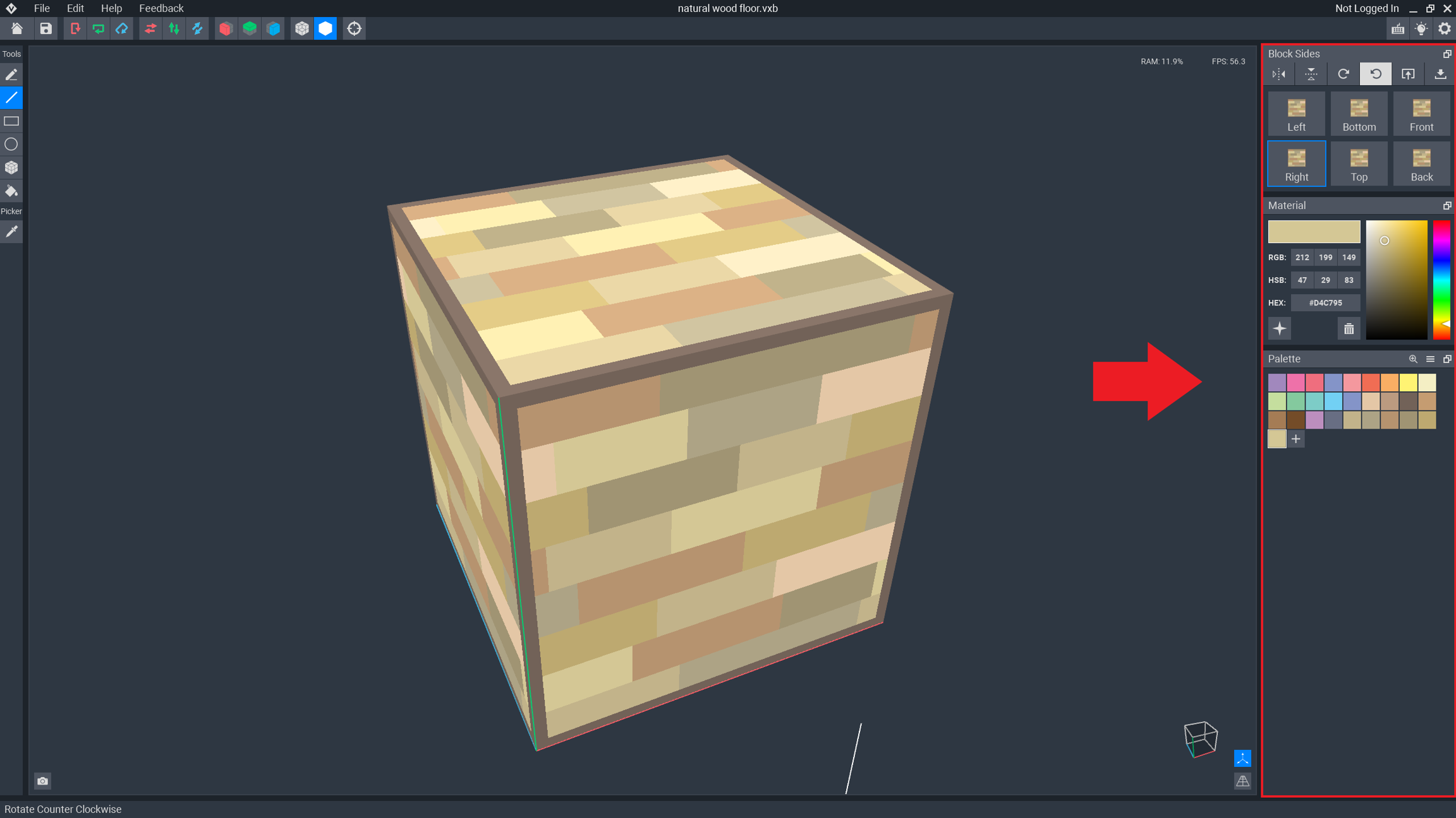 Modifying a colour swatch changes every voxel in your design where that colour swatch has been applied. This is a convenient tool for fine tuning the colors used in your block or model, and it can help you quickly create multiple versions of your block or model with colour variations.