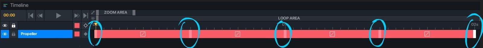 All nodes must have keyframes marking the beginning and the end of each animation.