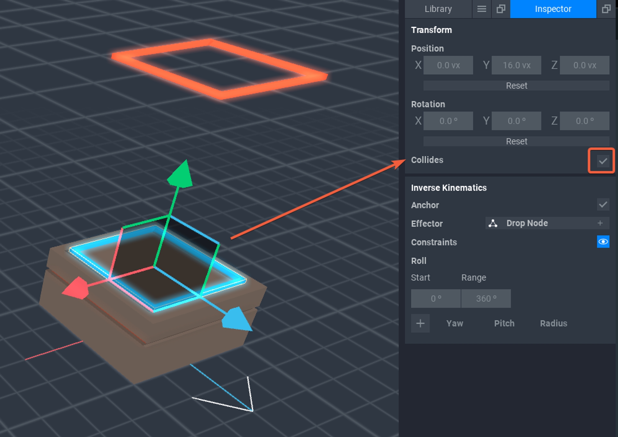 A collider (or bounding box) is the three-dimensional boundary of an asset that will have physical interactions with other assets in the Game and players.
