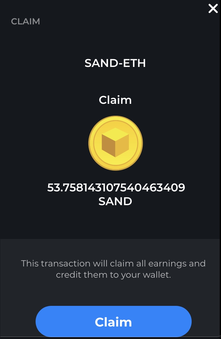 To enhance user security and compliance, we have implemented KYC verification for our staking process. Our goal is to ensure that our users' accounts are verified before they can participate in staking or claim their earnings. Unverified users can still withdraw their SAND, but only verified users can deposit new SAND and claim their weekly rewards.