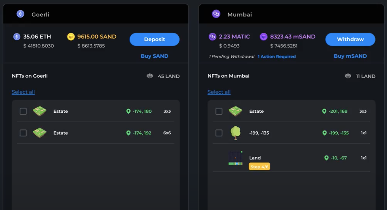 Instructions to withdraw LAND from the Polygon to Ethereum network.