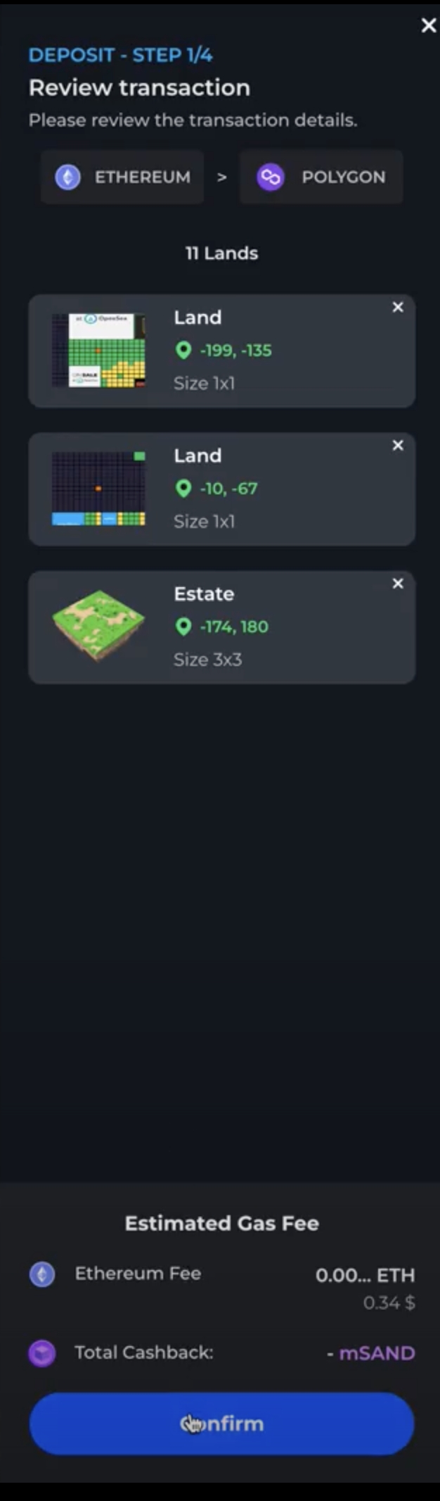 To encourage users to migrate their LANDs to the Polygon network and cover the gas cost, The Sandbox allocated 1M SAND as a cashback mechanism.