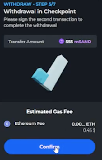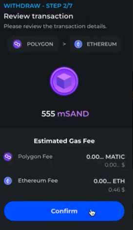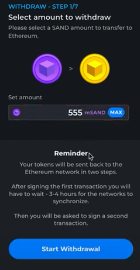 Instructions to withdraw SAND from the Polygon to Ethereum network.