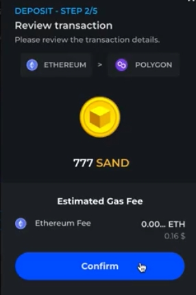 Instructions to deposit SAND from the Ethereum to Polygon network.