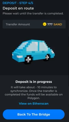 TRANSACTION TIMING It can take ten minutes to an hour for transferred LANDs or SAND to be reflected in your wallet depending on network congestion. There may also be a few minutes delay for your account at The Sandbox to update and reflect completed transactions.