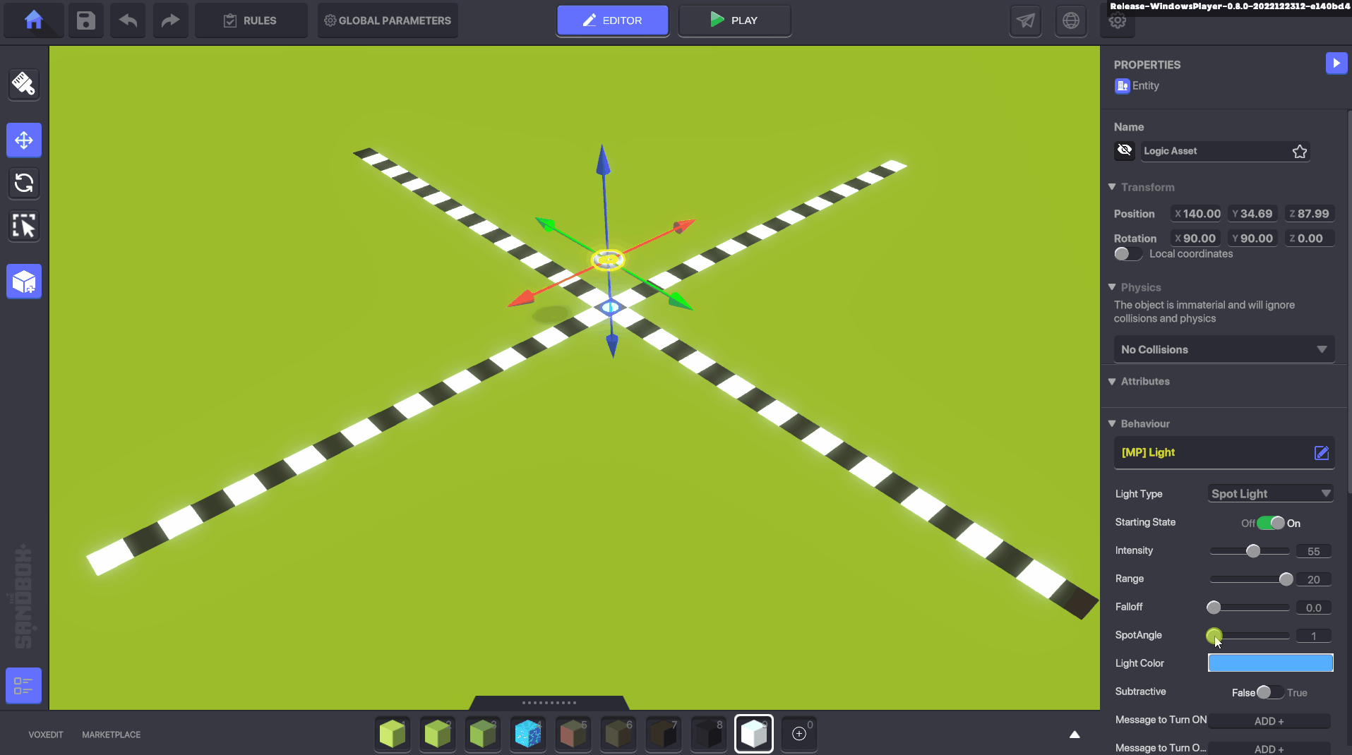 이 변수는 토글을 이용하여 최초 시점에 Light 비헤이비어를 켜고 끌 수 있습니다.