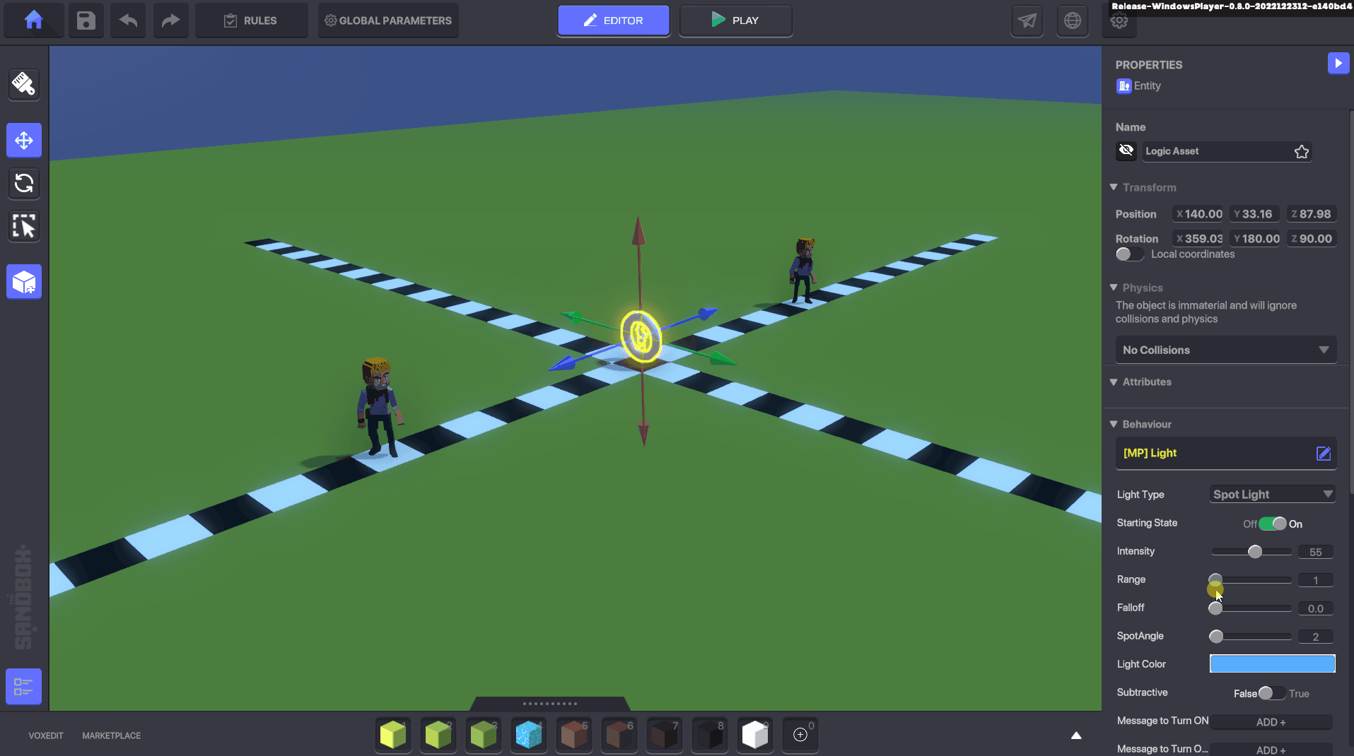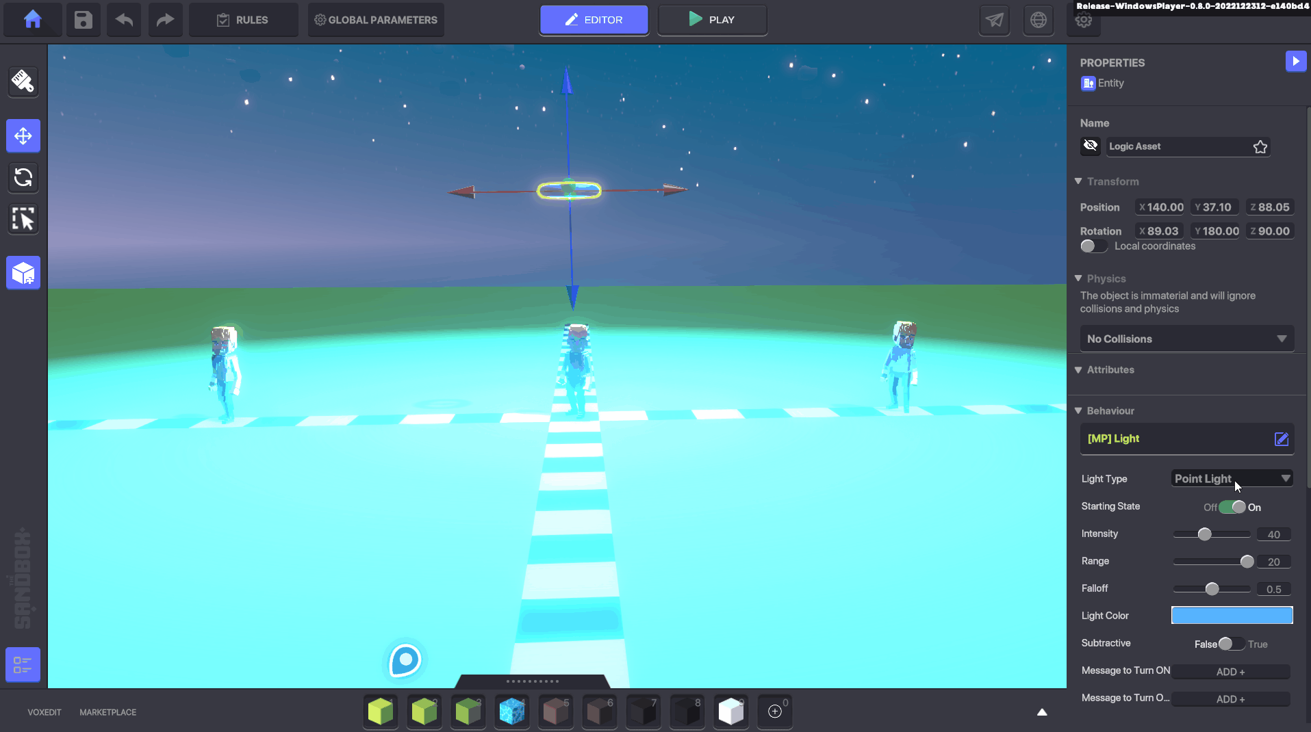 Light 비헤이비어는 편집 모드에서 프리뷰를 지원하여, 실시간으로 파라미터를 조정하여 결과를 확인할 수 있습니다.