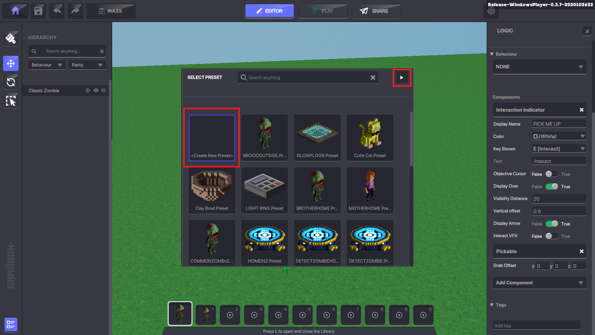 멋진 두 가지 기능을 활용하면 다양한 가능성이 열리며 재미있는 아이디어를 제공합니다. 바로 ‘Loot component’와 ‘Presets’입니다.