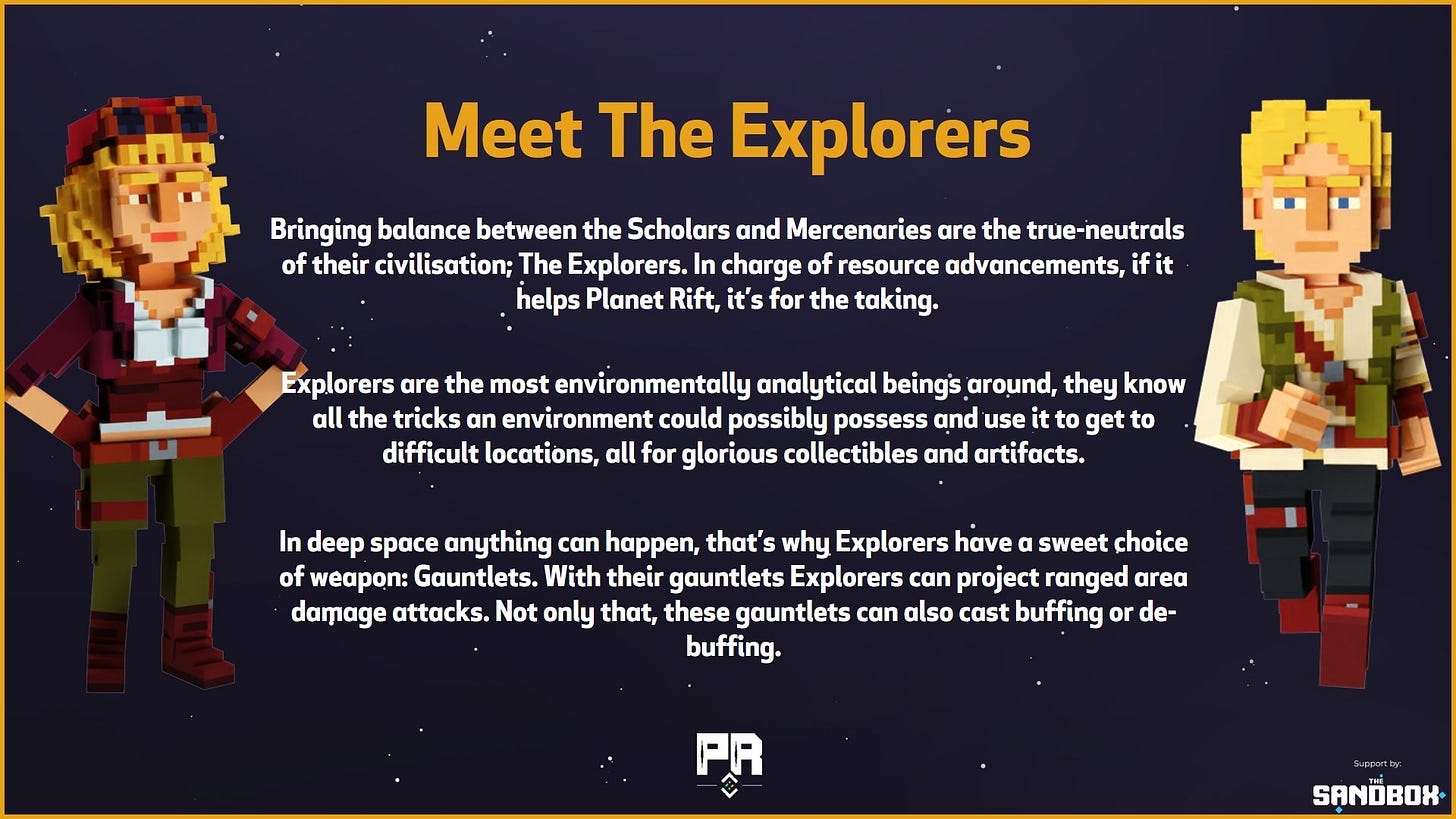 Planet Rift는 더 샌드박스 커뮤니티에서 다른 훌륭한 조력자들의 도움과 함께 신디센트 (Sythicentt)와 사리네이드 (Sarynade)라는 닉네임으로 활동하는 두 명의 샌드박스 유저의 손에서 탄생했습니다.