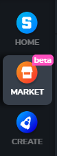 로그인 또는 계정 생성 후 필요한 암호화폐를 지갑에 채웠다면 웸사이트 왼편 툴바의 Market (샵) 아이콘을 클릭하여 마켓플레이스로 이동합니다.