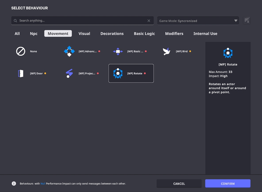 Dokümantasyon, Game Maker'ın davranış ve bileşenler için yeni kategorilerine uyacak şekilde yeniden düzenlendi ve renkli simgelerle çok oyunculu ortamdaki performansa göre sıralandı.