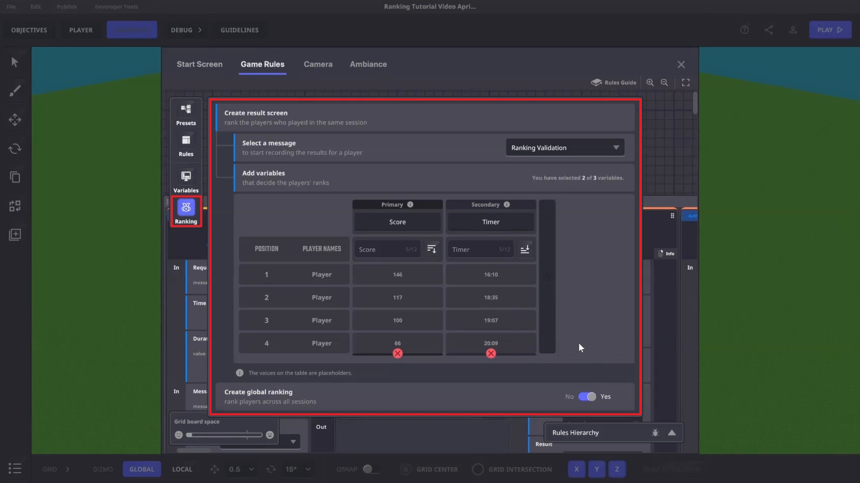 Oyun Kuralları penceresindeki yeni Sıralama seçeneğini kullanarak, oyun oturumunun sonunda ve Deneyim sayfanızda ihtiyaç duyduğunuz şekilde sıralanmış üç değişkenin verilerini gösterebilirsiniz. Kendi yarışmalarınızı düzenlemek için harika bir araçtır!